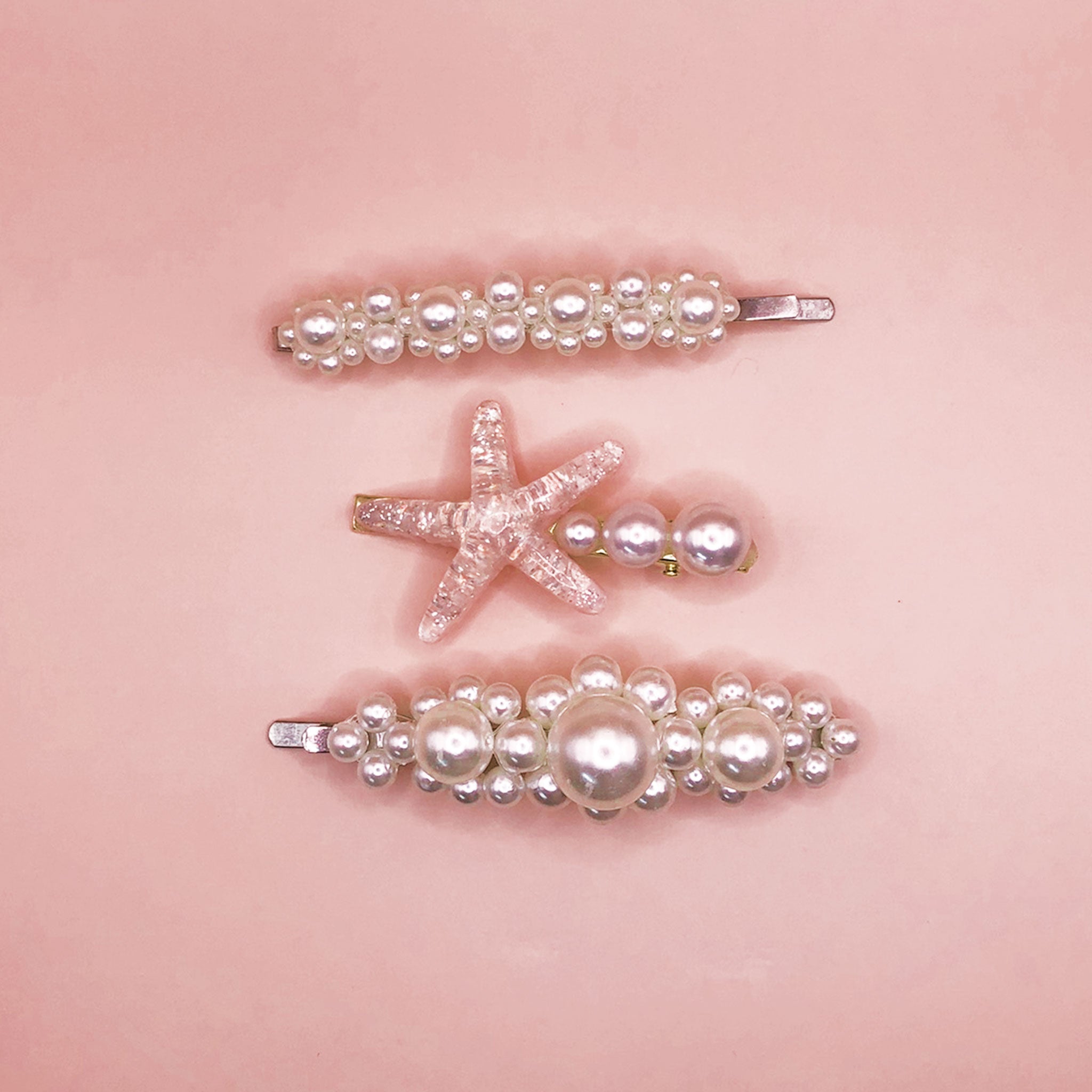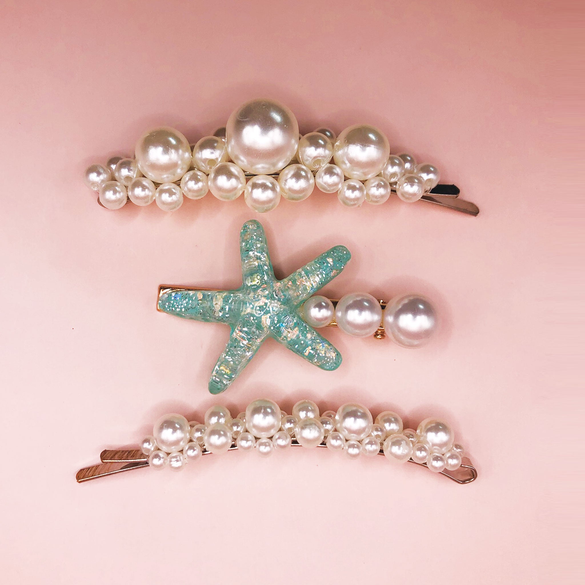 Add a touch of elegance to your look with this sea star pearl hair pin. The delicate design and glittering pearls are sure to make a statement in any hair do.