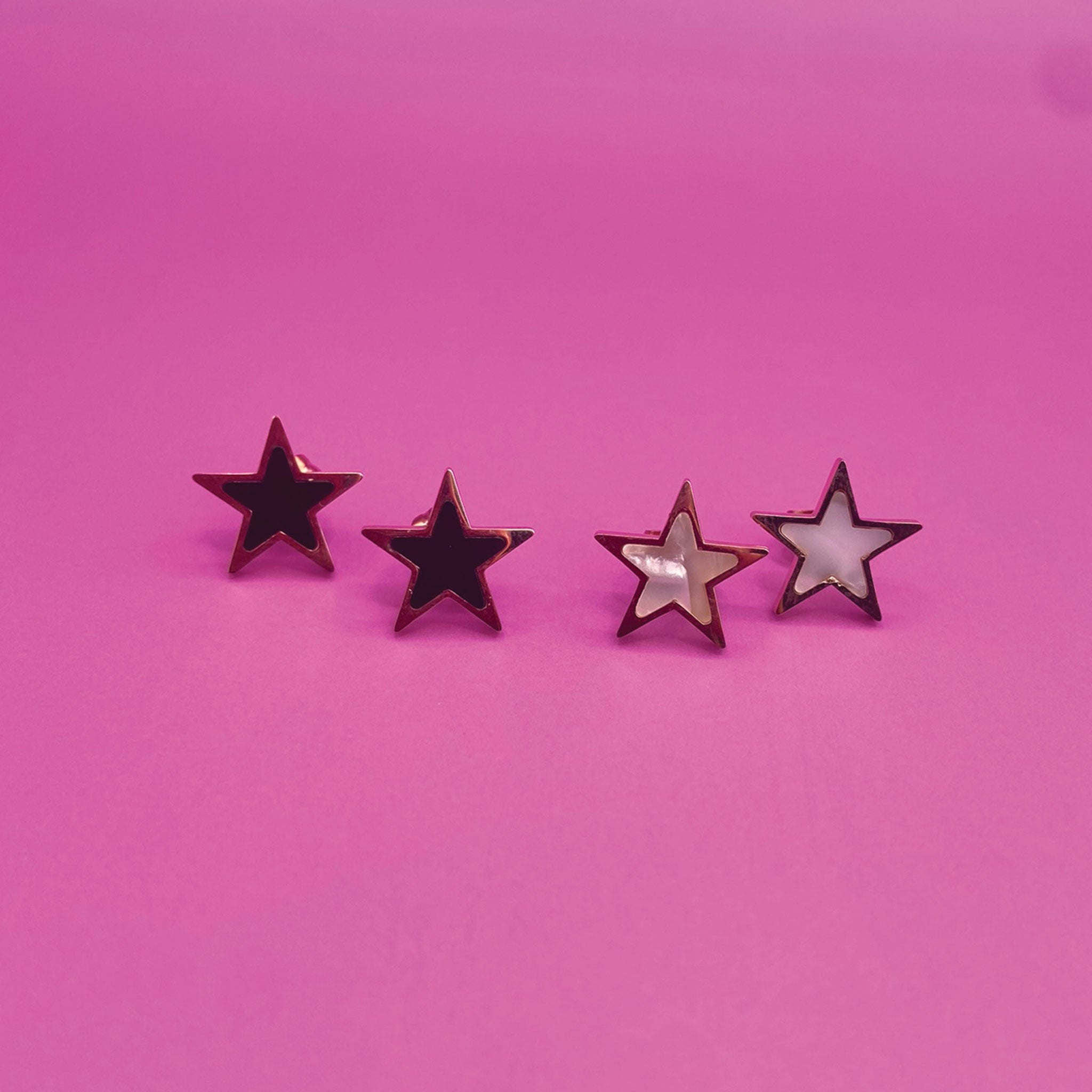 Add a touch of glam to your ensemble with our Rockstar earrings. These little stars are set in a chic black and white gold design, making them ultra-trendy